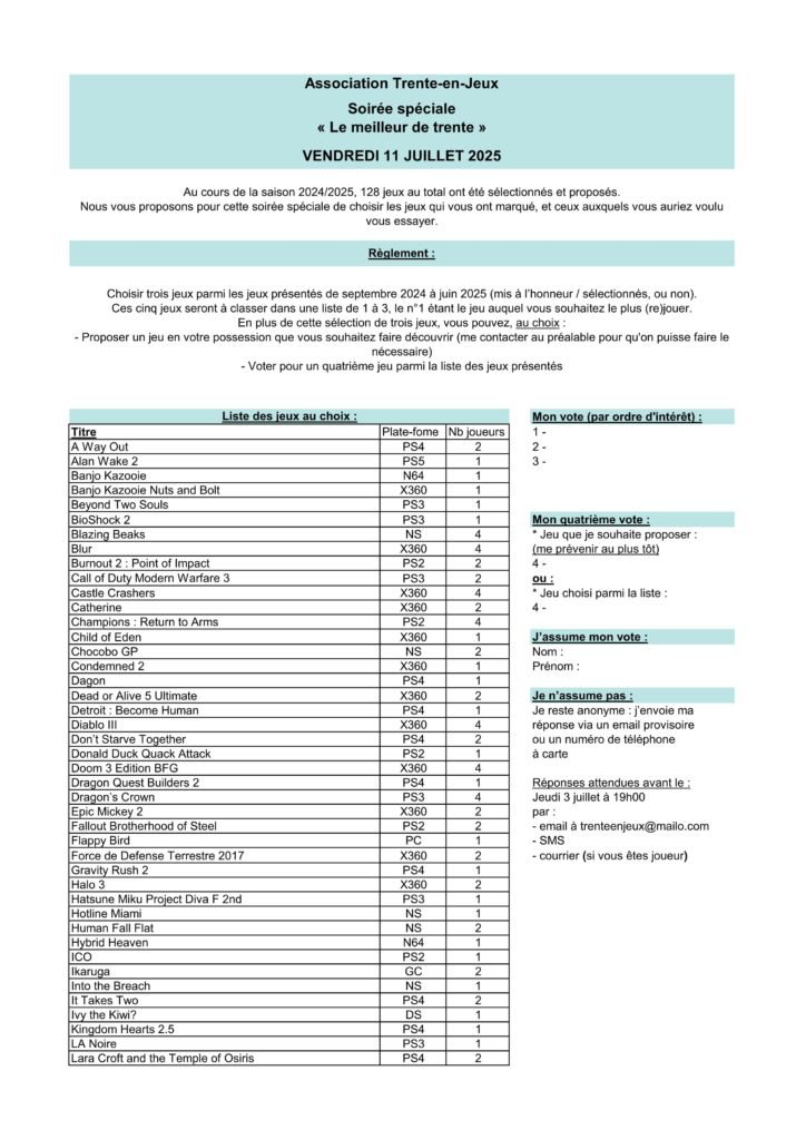 L’ensemble des jeux présentés pendant l’année furent proposés aux vote des adhérents.